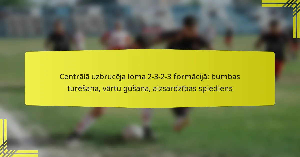 2-3-2-3 futbola formācija ietver atšķirīgas spēlētāju lomas, kas veicina gan aizsardzības stabilitāti, gan uzbrukuma radošumu. Katram pozīcijai ir specifiskas atbildības, kas strādā kopā, lai izveidotu līdzsvarotu komandas struktūru.