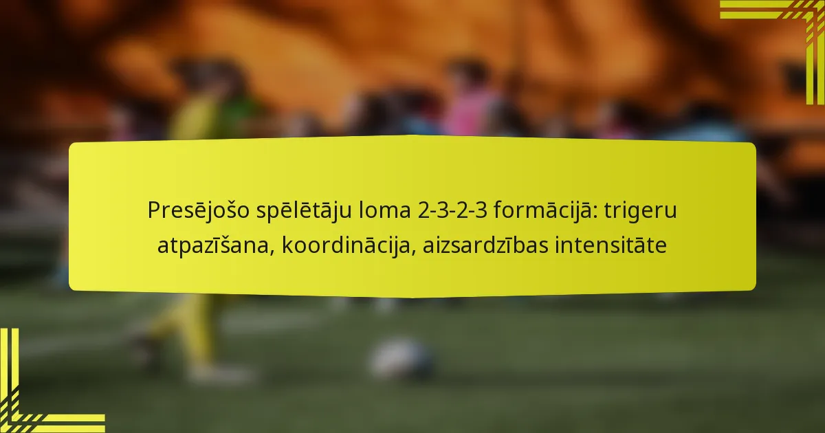 2-3-2-3 formācija ir taktiska izkārtojuma shēma futbolā, kas līdzsvaro aizsardzību un uzbrukumu, iekļaujot divus aizsargus, trīs pussargus, divus uzbrucējus un vārtsargu. Šī formācija uzlabo spēles veidošanu, veicinot strukturētu bumbas progresiju un efektīvu komunikāciju, kamēr tās presinga stratēģijas uzsver koordinētus centienus ātri atgūt bumbu un izjaukt pretinieka spēli. Kas ir 2-3-2-3 formācija futbolā? 2-3-2-3 formācija ir …