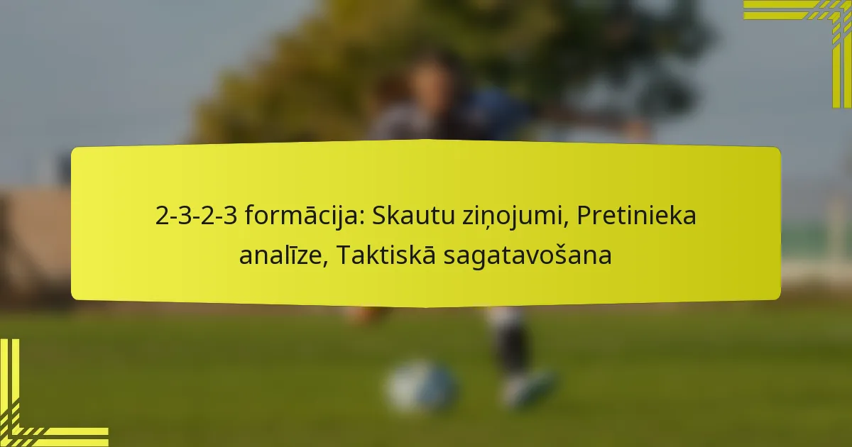 Taktiskā sagatavošanās 2-3-2-3 formācijai ietver tās struktūras un lomu izpratni, kā arī efektīvu stratēģiju izstrādi gan treniņiem, gan spēles situācijām. Šī formācija uzsver līdzsvarotu pieeju, ar spēcīgu fokusu gan uz aizsardzību, gan uzbrukumu, kas prasa rūpīgu plānošanu un izpildi.