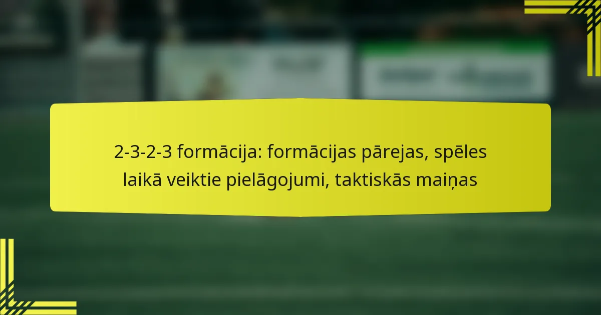 2-3-2-3 formācija prasa, lai spēlētāji pielāgo savas lomas pārejās, lai efektīvi līdzsvarotu uzbrukuma un aizsardzības pienākumus. Ātra lēmumu pieņemšana un apziņa ir būtiska, lai izpildītu pretuzbrukumus un izveidotu spēcīgu atgūšanas struktūru pēc bumbas zaudēšanas. Izmantojot savu pozicionēšanu un komunikāciju, spēlētāji var izmantot pretinieka aizsardzības vājās vietas, vienlaikus ātri atjaunojot savu formu, lai samazinātu pretuzbrukumu draudus. …